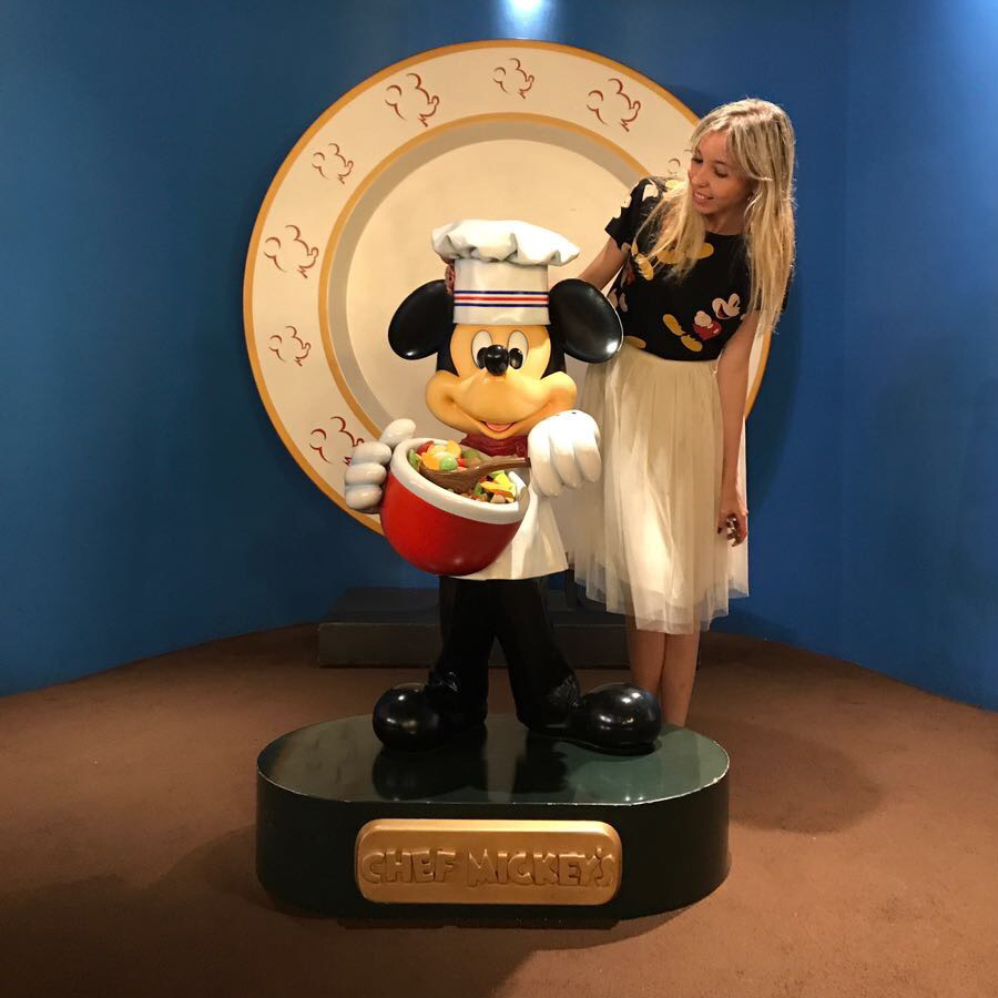 chefmickeyAgora vou falar sobre a comida… Você paga um preço fixo e pode comer à vontade. As bebidas mais básicas também estão todas inclusas no valor, você só vai pagar a mais se quiser um drink ou algo muito diferente. O buffet é bem variado, tem saladas, opções de carnes, frango, massas, e algumas especialidades americanas. Na parte de sobremesas tem brownie, torta de limão, de morango. E você ainda pode montar seu sorvete com os toppings que desejar.