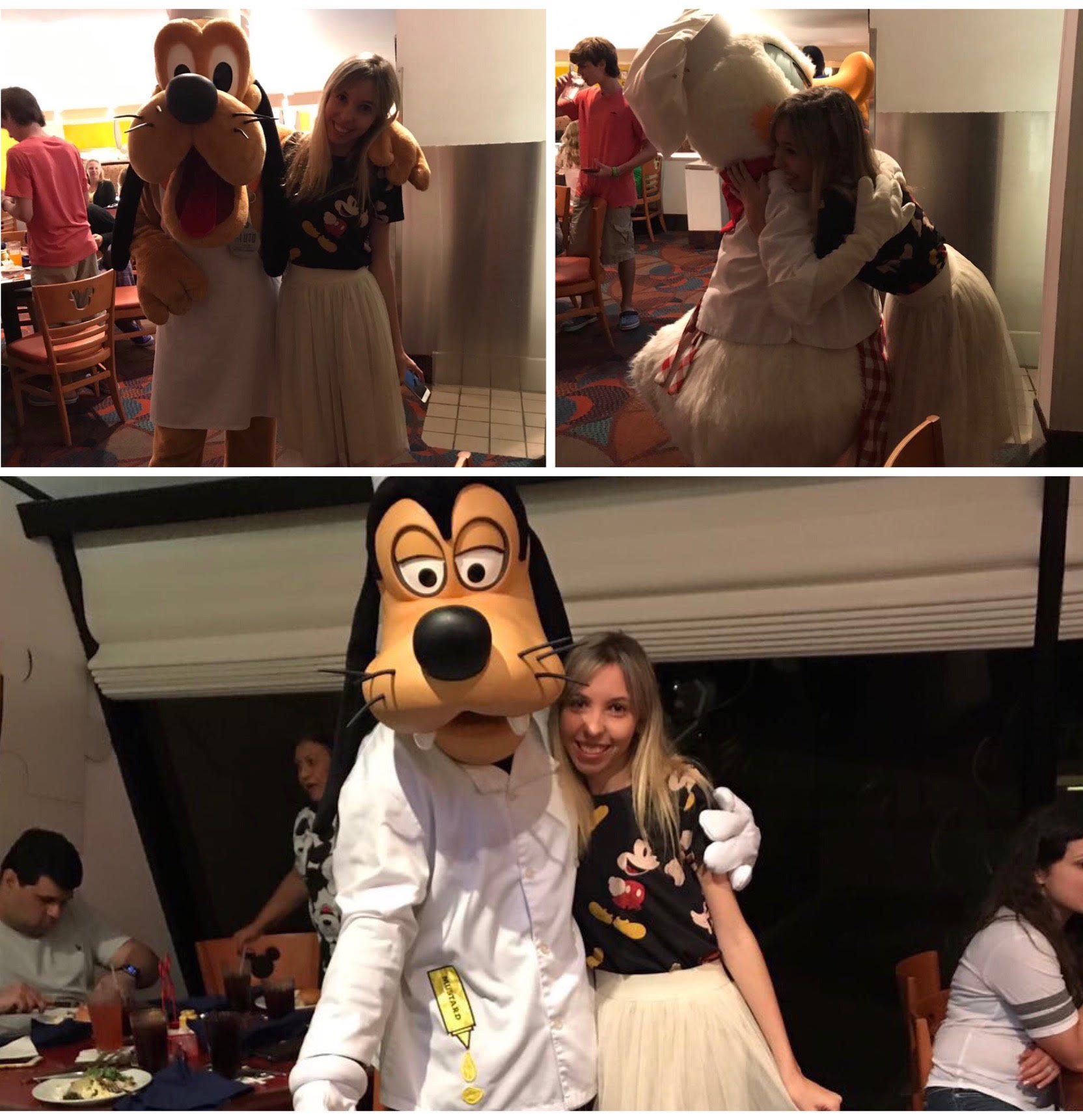personagensO restaurante é todo aberto, então assim que entra você já se encanta com a estátua do Mickey e com toda a decoração. Um detalhe que eu achei bem legal e que as crianças adoram é que os personagens convidam todo mundo a girar seus guardanapos enquanto toca uma música e eles vão circulando pelo espaço, é uma bagunça gostosa.