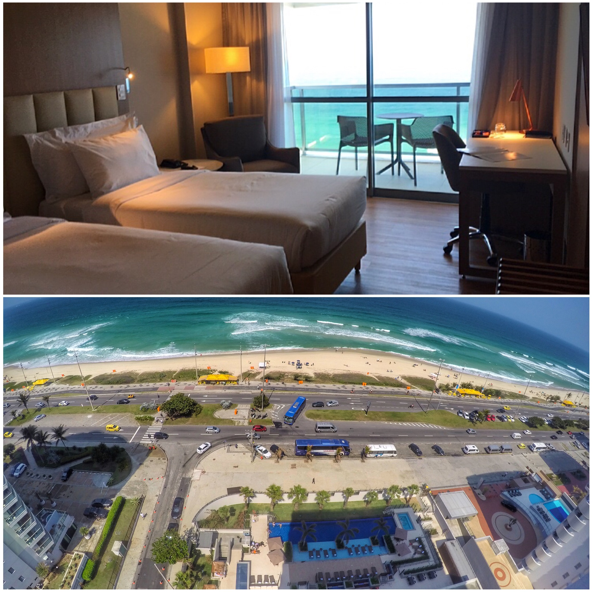 O hotel dispõe de 311 unidades habitacionais entre apartamentos e suítes. Todos os quartos são espaçosos e muito bem decorados, uns com vista total e outros parcial do mar ou da lagoa de Marapendi, onde é possível ver até o Parque Olímpico. Fiquei apaixonada pela varanda e por essa vista espetacular. Nada mal acordar olhando para esse mar maravilhoso, né!?