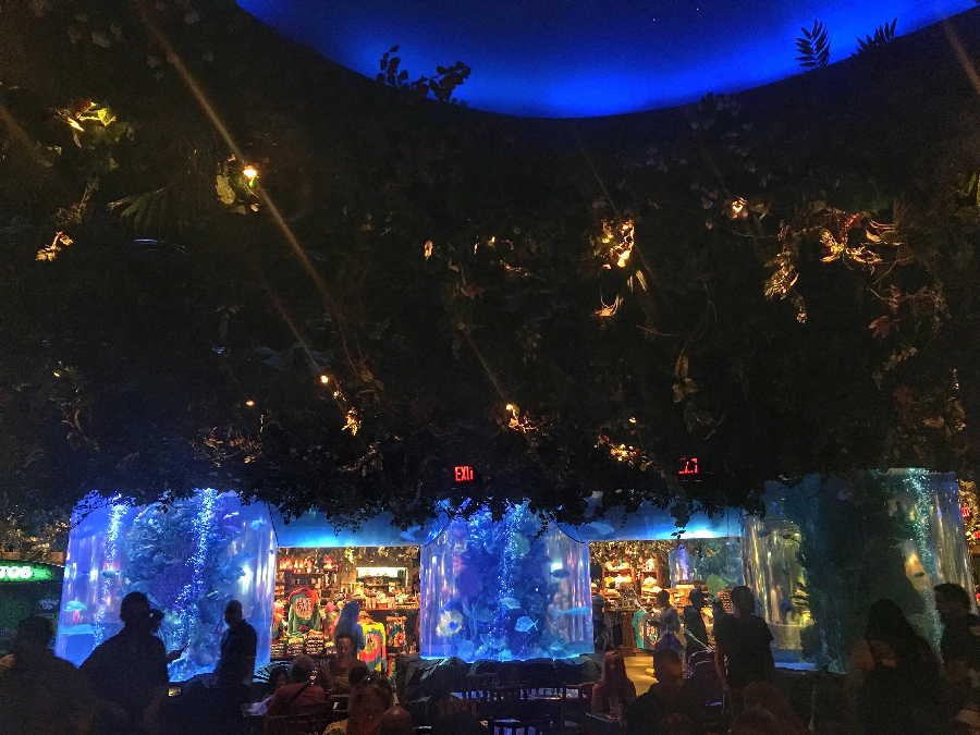 Dentro do restaurante também há um aquário lindo. Se você e/ou seus filhos amam esse clima selvagem, anota na listinha quando for programar sua viagem para Orlando. Vale muito a pena conhecer.