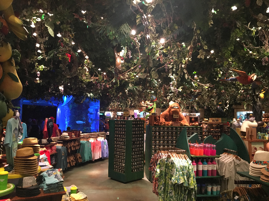 rainforest-animaisNa entrada do restaurante há uma lojinha com produtos relacionados ao clima selvagem. Bichos de pelúcia, camisetas, canecas, garrafinhas, chaveiros, brinquedos, entre outras lembrancinhas.